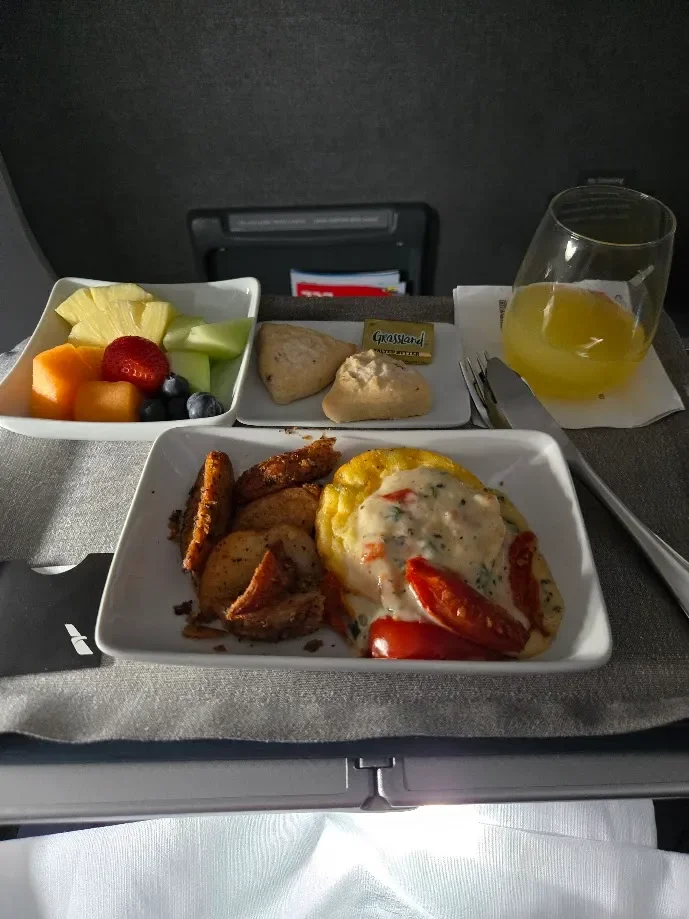 Not the first mimosa of the trip. Not the last. But definitely the one that ruined me for regular life. Breakfast in First Class.