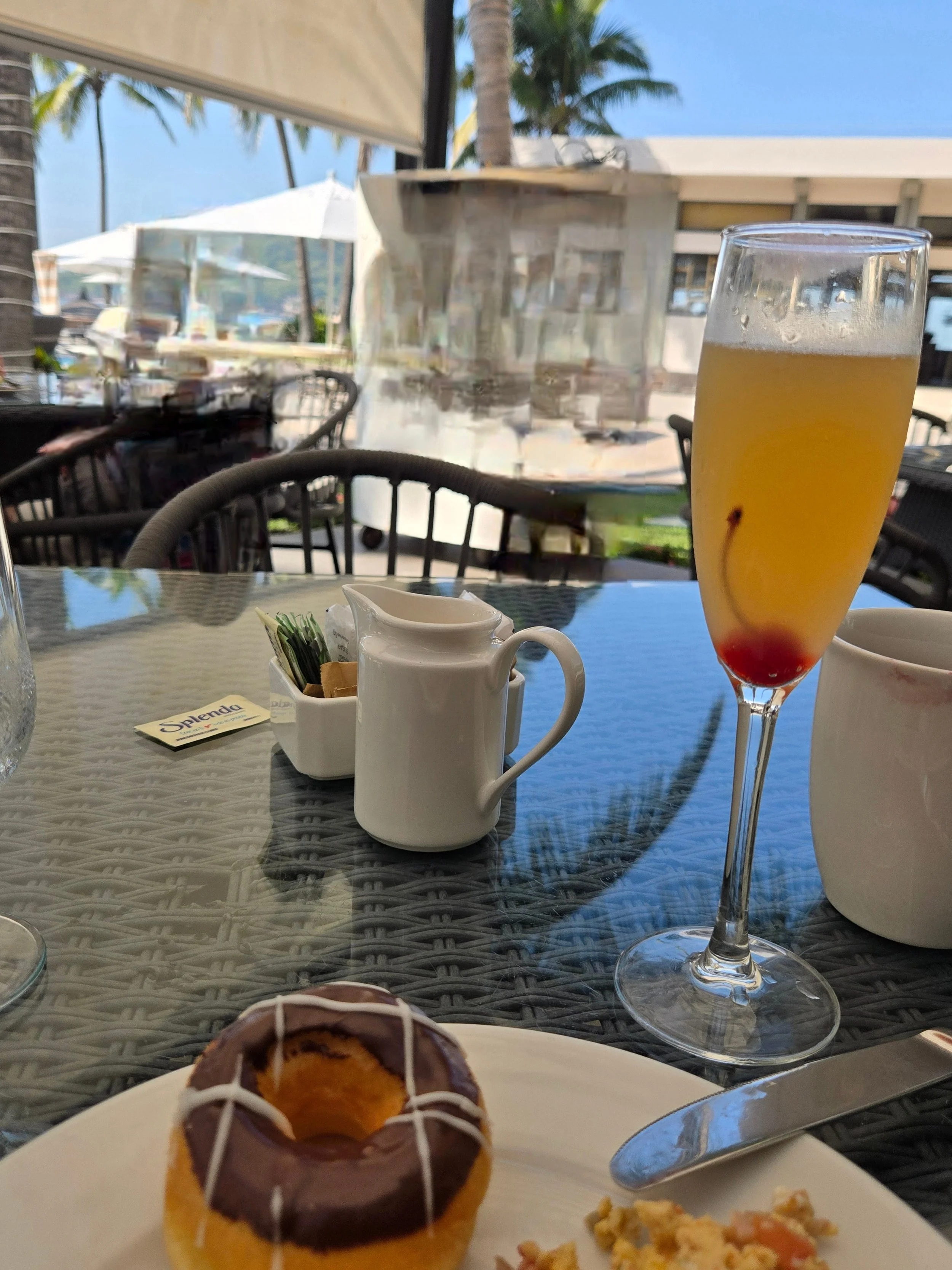 Because when you spend a week at a beautiful resort — sunshine, ocean waves, warm breeze, breakfast with a view — a mimosa isn’t just a drink. It becomes part of the atmosphere. It’s the opening ceremony of the day. It whispers: