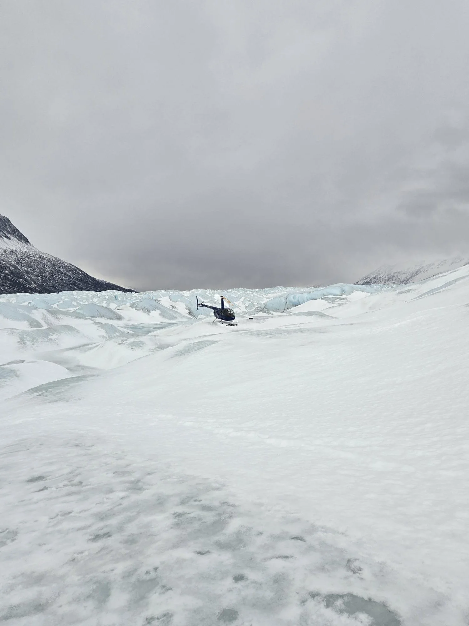 The entire reason for this expedition, the pre-dawn drive, the white-knuckle navigation, the complete trust in GPS was a helicopter ride that would land on three different glaciers, giving us time to step out and walk around on each one.