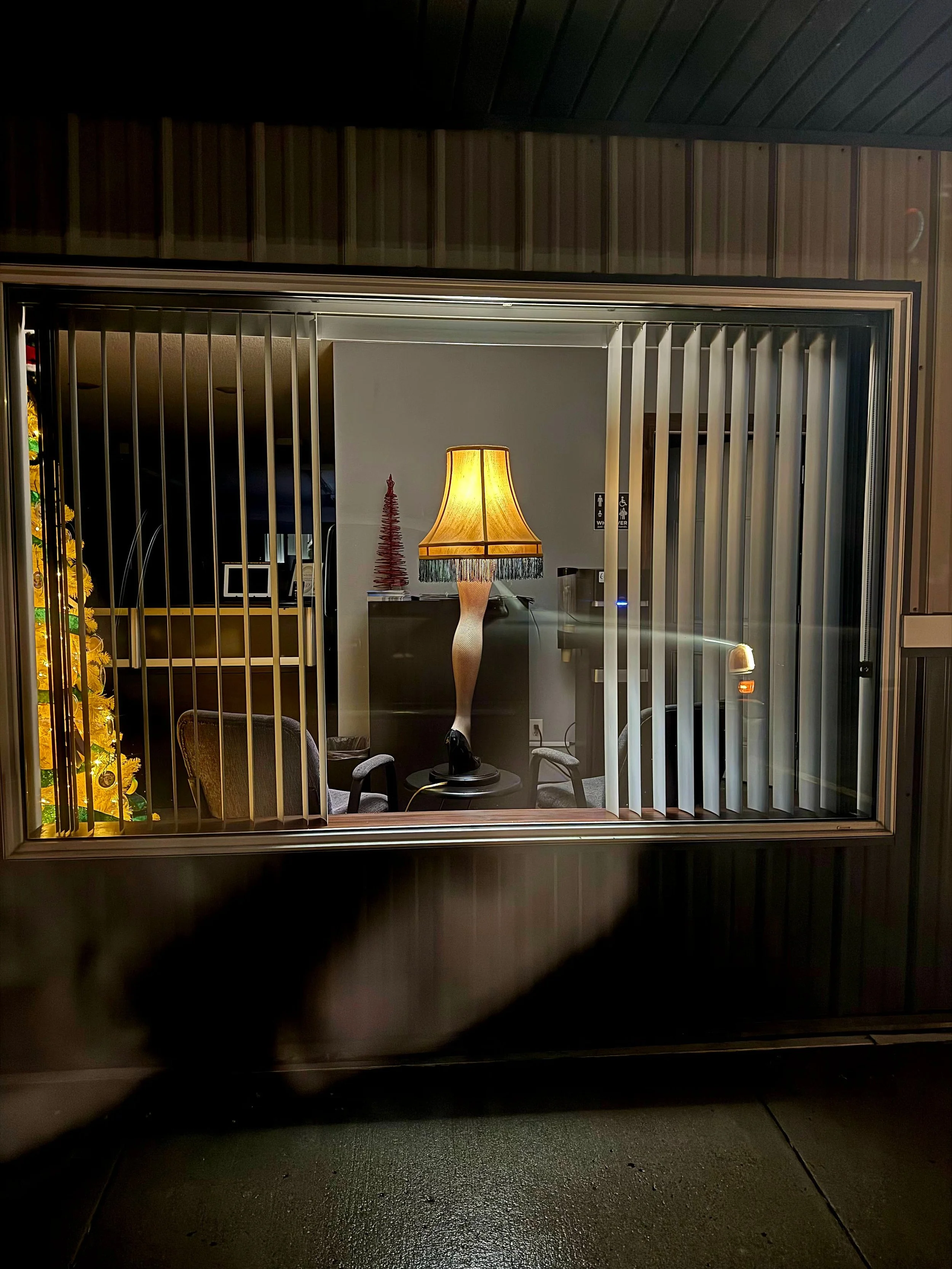 A friend of mine recently drove by, stopped, and took a picture of it because… well… when you see a glowing leg lamp in a business window, you kind of have to.